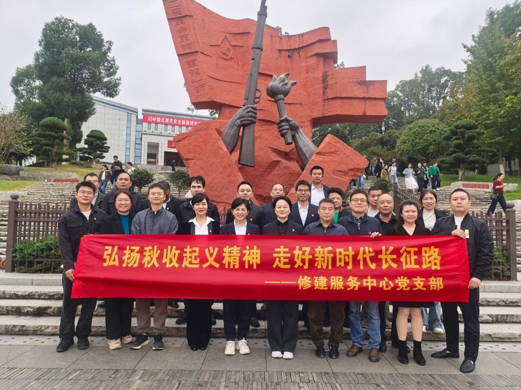 11月6日,修建服务中心党支部组织全体党员、发展对象及专业技术骨干等30人,赴浏阳文家市、中和镇开展“弘扬秋收起义精神走好新时代长征路”主题党日活动。伟德国际1946官方网副部长谭梦花以普通党员身份参加,党委副书记陈可到场指导。