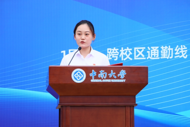 计算机学院王梦昕作为学生代表分享感受。她说道,中南校园很大,深切感受到跨校区通勤的不易。如今校园摆渡车的开通,不仅是出行方式的升级,更是学校对学生关心和呵护的细微体现,这让大家心中充满了温暖,同学们都亲切地称它为“宝宝巴士”。