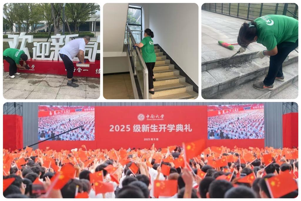 开学期间,全校环境每日不间断清洁,垃圾及时清运,全面守护新生与家长的健康与安全。学生宿舍管理中心顺利为14000余名新生安排住宿,明亮整洁的宿舍楼里,从黑板上手写的欢迎标语,到宿管阿姨亲切的“生活指南”,都在热情迎接2025级新生顺利入住新家。