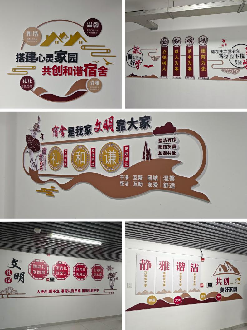近期,学生宿舍管理中心在麓南校区升华学生公寓42、43、44栋、南5舍以及天心校区新3舍建设宿舍文化墙,以图文并茂的形式向同学们娓娓讲述“家”的归属、“礼”的修养与“学”的勤奋。伟德国际1946官方网利用学生高频经过的物理空间,让宿舍的墙壁开始“说话”,对学生进行沉浸式、互动式的价值引导,这是在育人道路上的用心探索,也是伟德bv1946工作从“保障型”向“育人型”升级的生动实践。